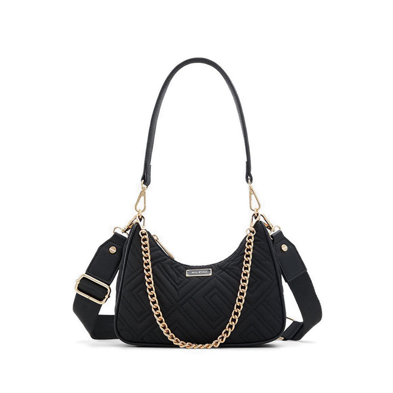 A quilted shoulder bag with distinctive curve-appeal -- that's some serious arm candy.