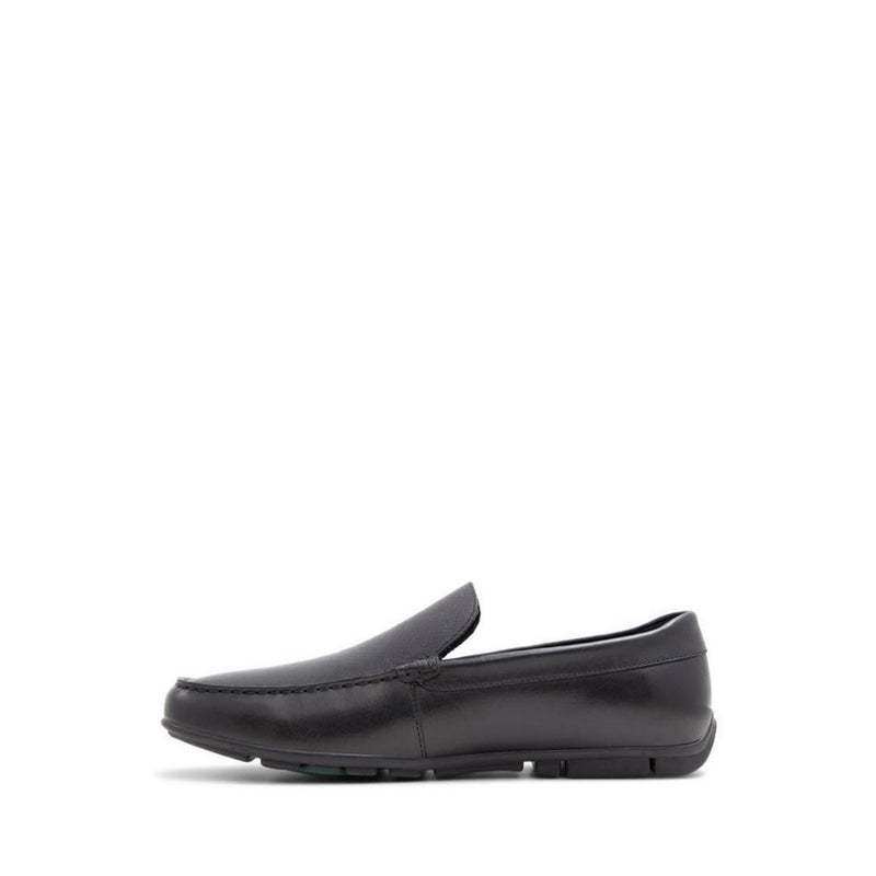 We’re obsessed with the simple silhouette of this Bovis leather slip-on. Jet-black upper with a flat, zero-heel sole gives this casual look a trendy edge.