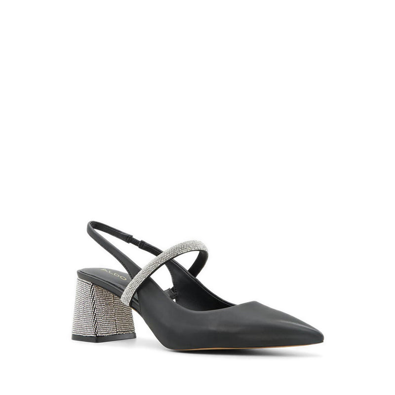 Thanks to that shiny, jet-black finish and blinged-out block heel, our gorgeous Kaiaria slingback takes you to party-ready in the blink of an eye.