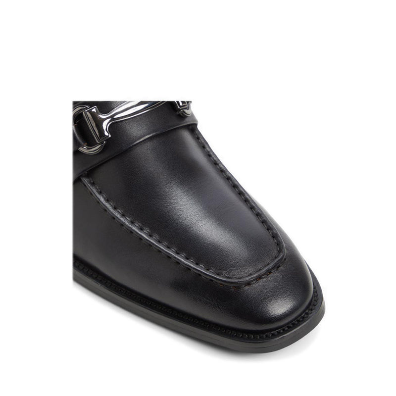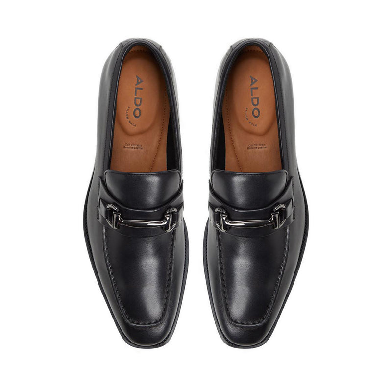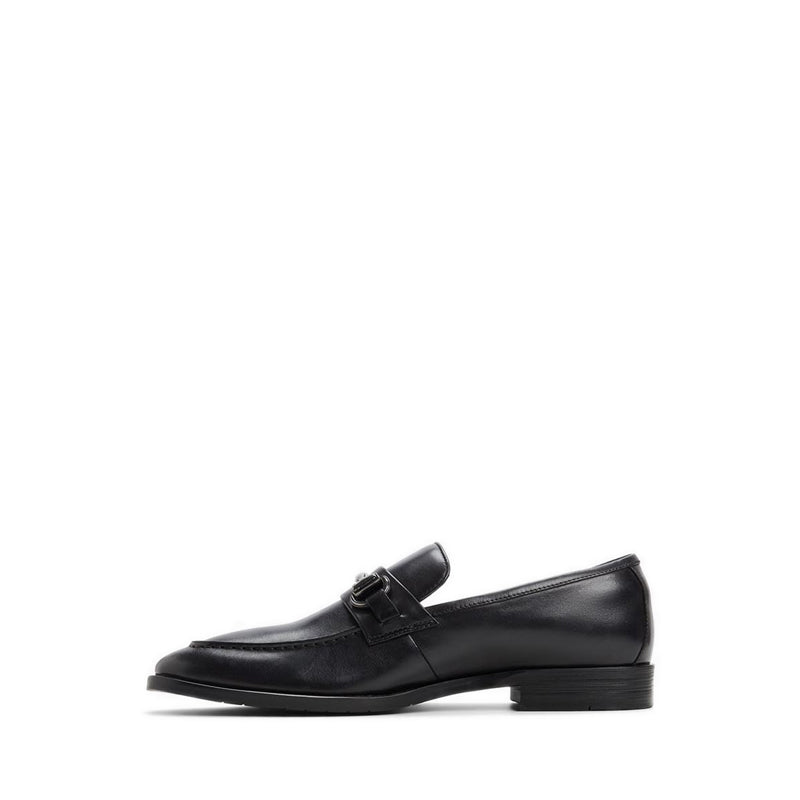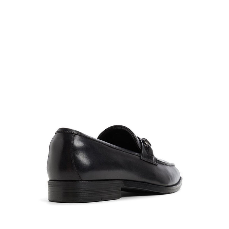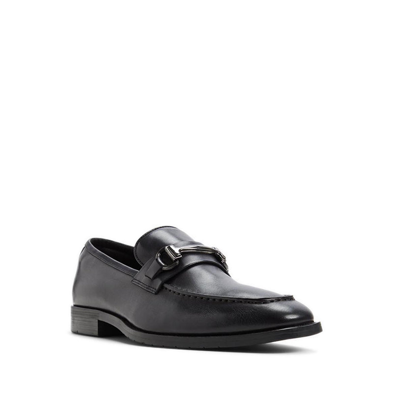 An eye-catching metal ornament adds flair to these classic leather loafers. The result is a slip-on style that does double duty whether you're at work or play.