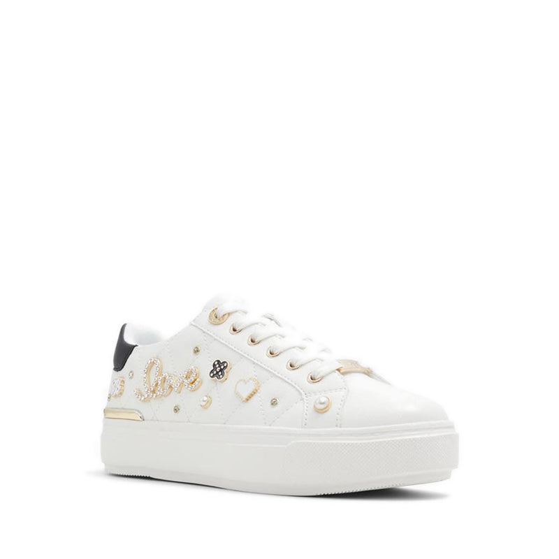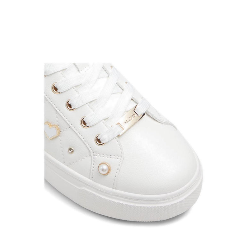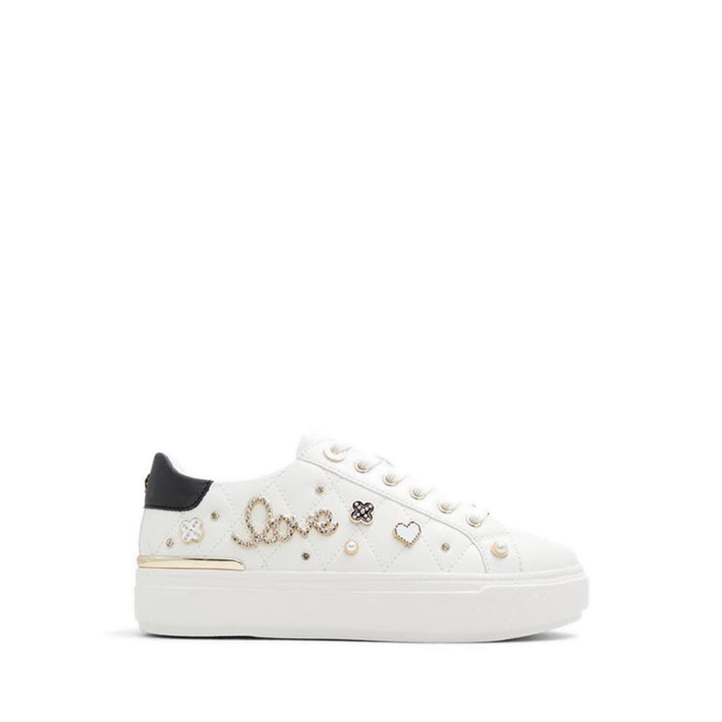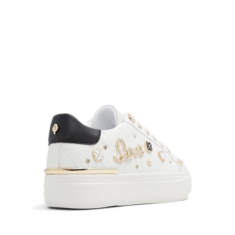 Navy blue touches with gem-encrusted charms give these cupsole sneakers playful novel touches on a classic style.