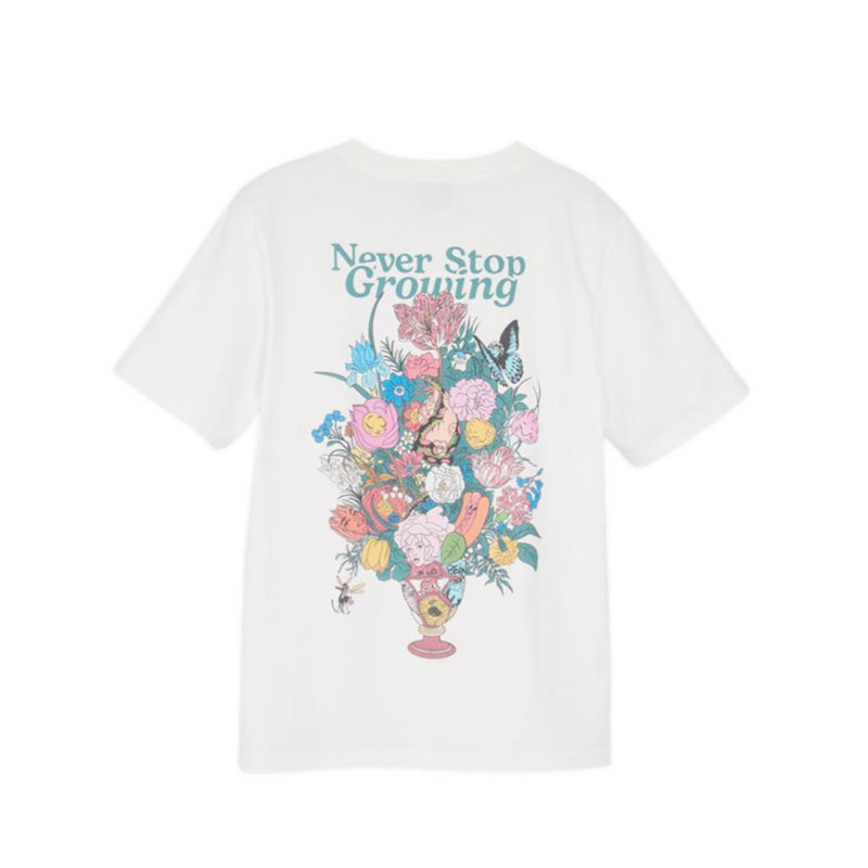 The classic white tee, brought to you by prolific street artist Whatisadam. The butterfly motif from his capsule collection adorns the front of this graphic piece, while the back explodes into a whimsical, pop art expression of the ever-evolving nature of life.