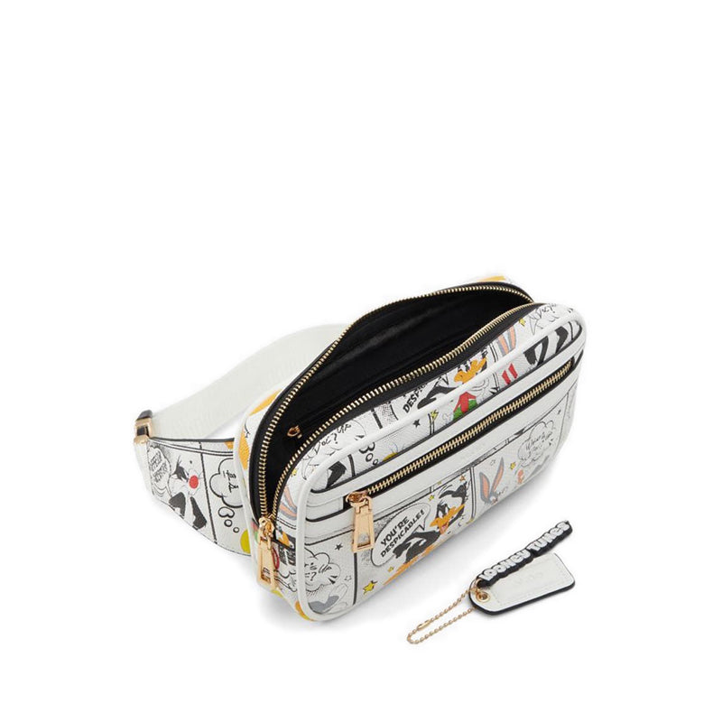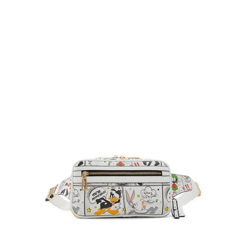 From cartoon to IRL. Bring the Looney Tunes™ cast with you on-the-go in this graphic printed, white fanny pack. Worn around the waist or across the chest, style your next adventure with a touch of play.